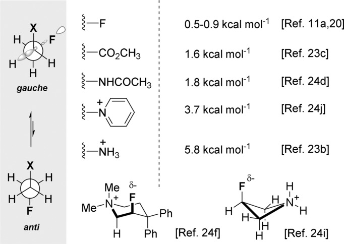 同样重要的是要强调,立体电子效应在不受主要空间相互作用影响的构型中才会显现。在氟偏位效应的案例中,通过链延伸生成2,3-二氟丁烷就足以压倒立体电子控制,正如福克斯等人最近的一份计算报告所表明的。此外,在取代的邻位二氟化合物中,可能存在两种偏位构型,这在最终的构型分析中必须予以考虑。