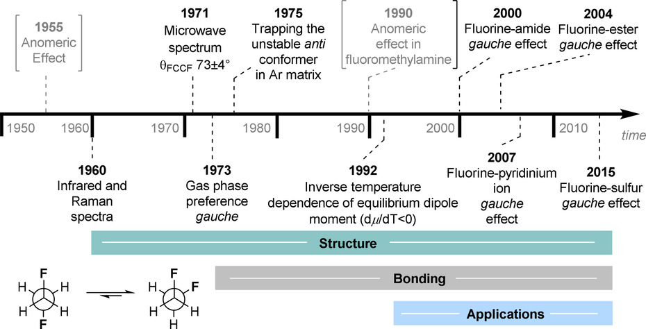 迄今为止,已用多种取代基描述了氟的左旋效应,包括氧、氮、以及硫(图2和图3)。 图3展示了一条时间线,重点标出了左旋效应的历史和发展中的关键事件。