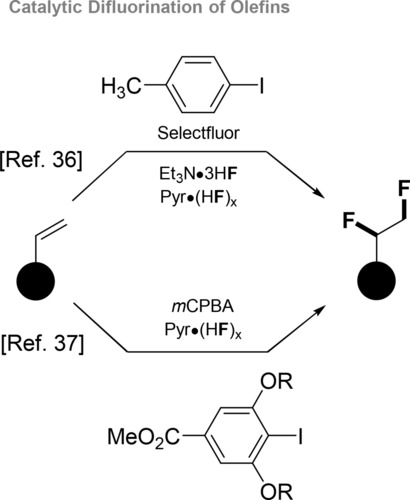使用1,2-二氟基团来调节结构的一个主要限制在于与其安装相关的准备挑战。这些通常依赖于氧化化学和随后的脱氧氟序列。然而,最近描述烯烃直接催化1,2-二氟化反应的报告可能会加速这种不断发展的方法,以调节有机材料的结构和功能(见图1)。